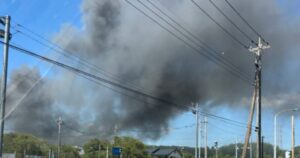 現場では黒煙が空高く立ちのぼり、